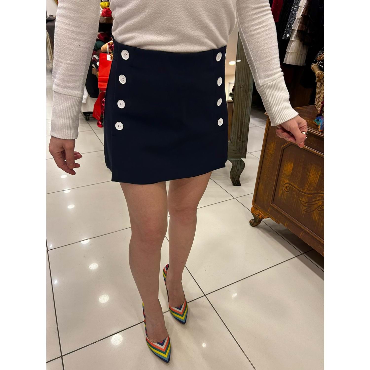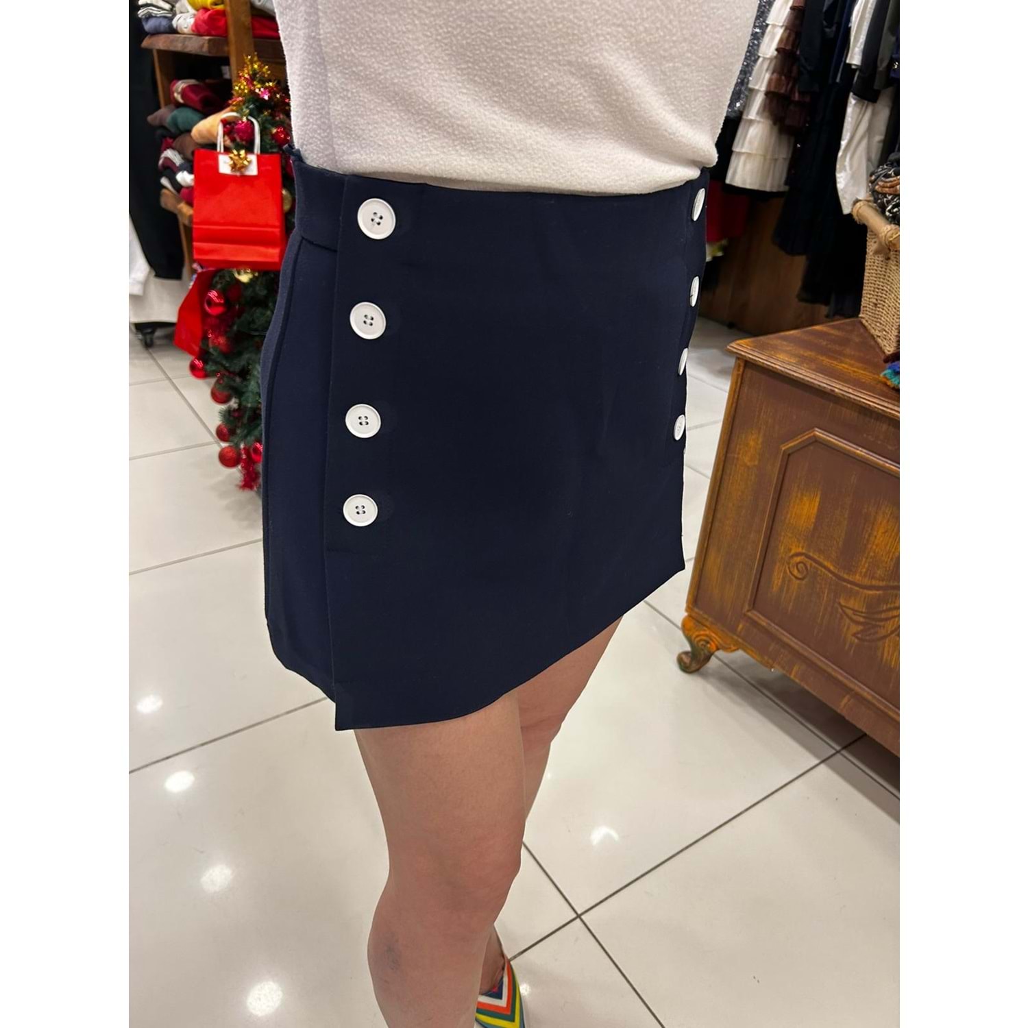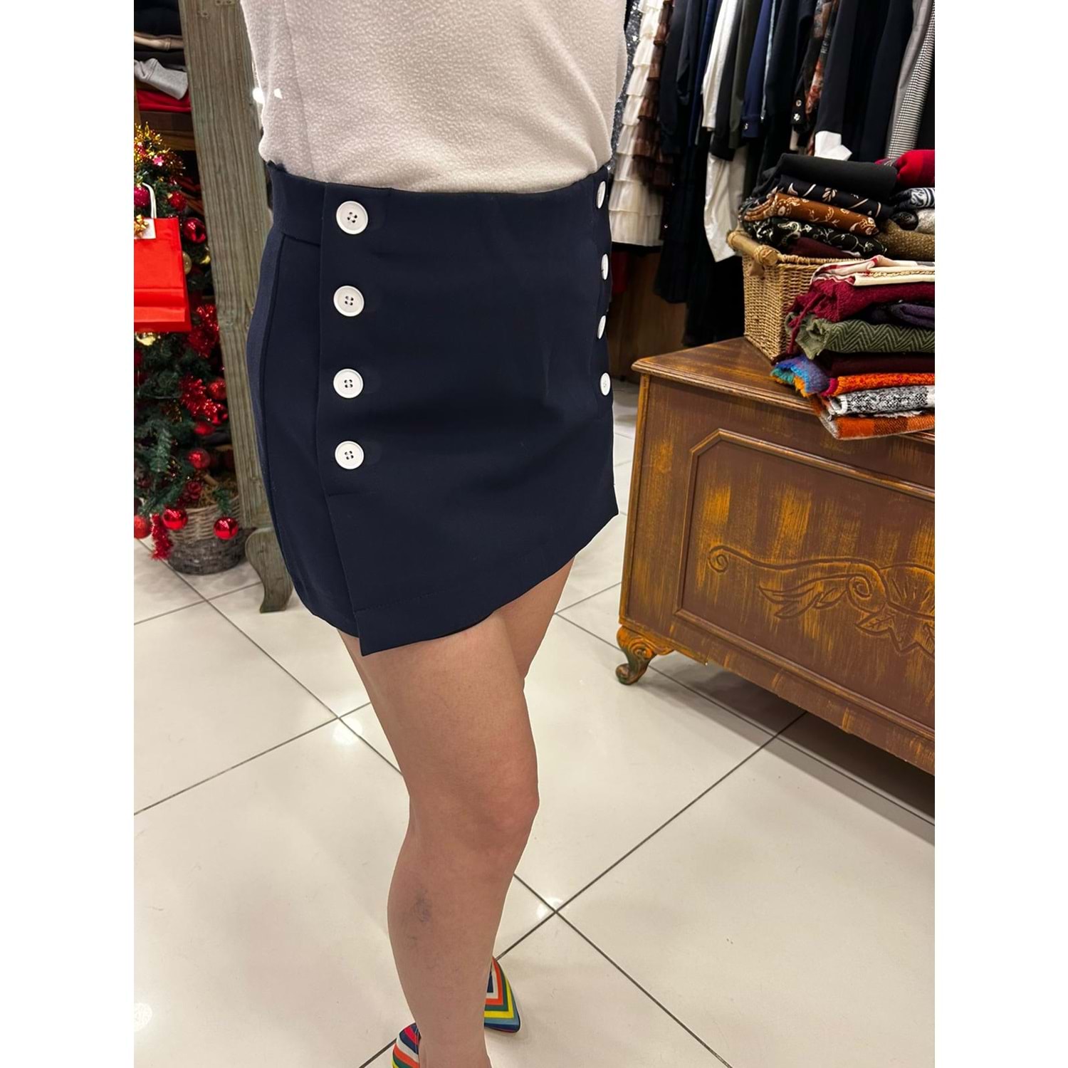 ÖNDEN İKİ TARAFLI BEYAZ DÜĞMELİ ŞORT ETEK LACİVERT HASSAS YIKAMA %30 VİSKON %70POLİESTER