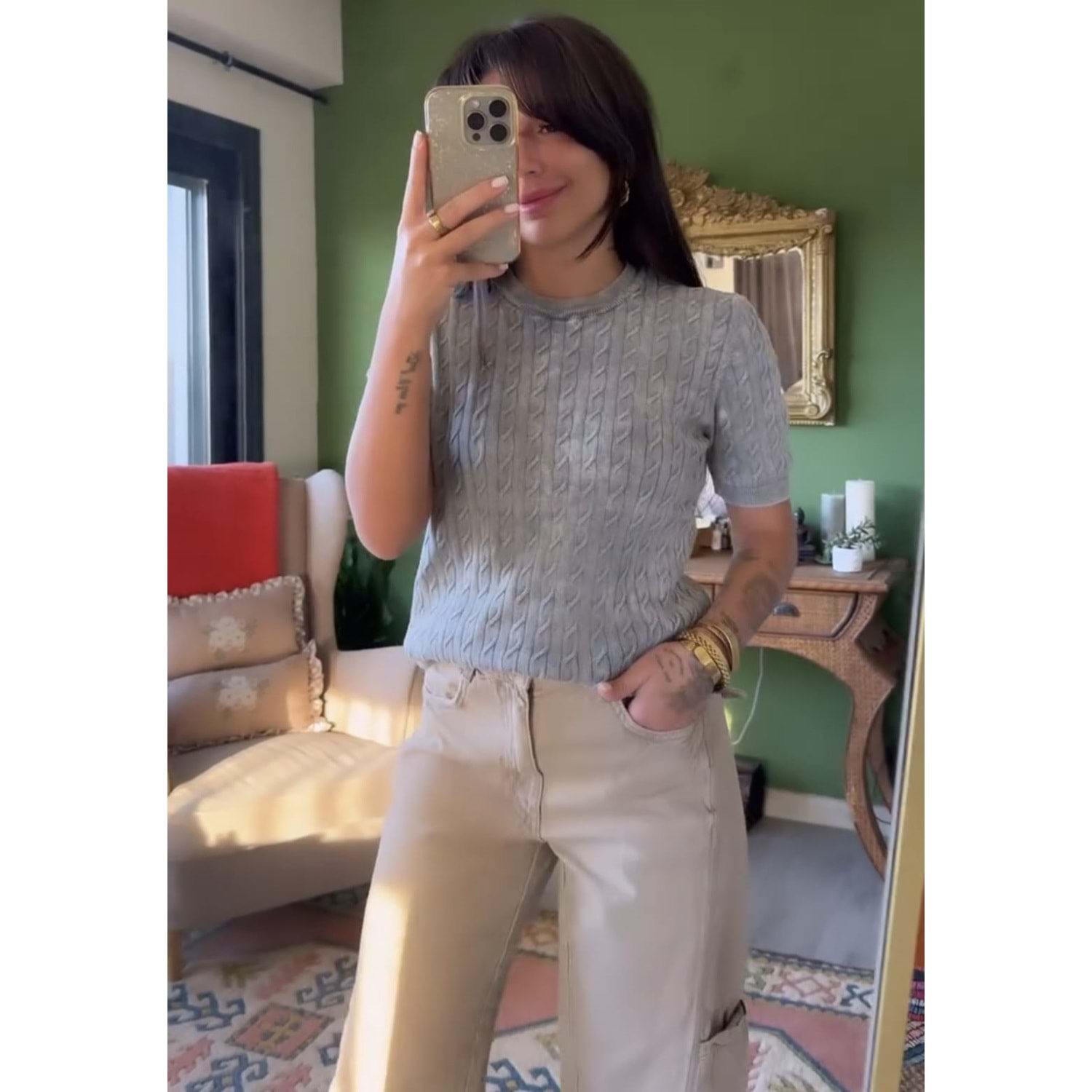 %80 Cotton %15 Geri dönüştürülmüş pamuk %5 POLYESTER %30'C DE YIKAYINIZ TERS YIKAMA YAPINIZ TERS ÜTÜ YAPINIZ KURUTMA MAKİNASINDA KURULAMAYINIZ YANLARI CEPLİ KARGO MODEL PLAZZO MODEL