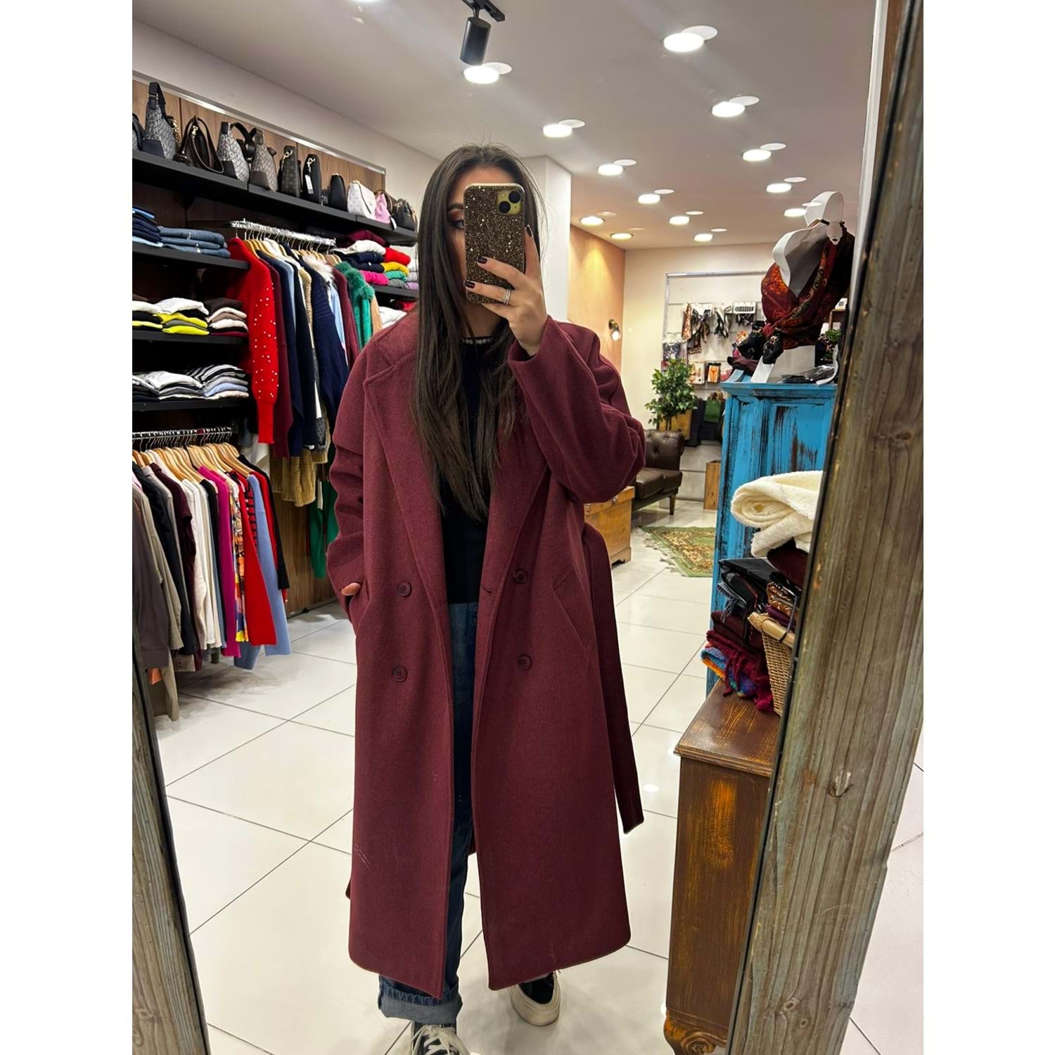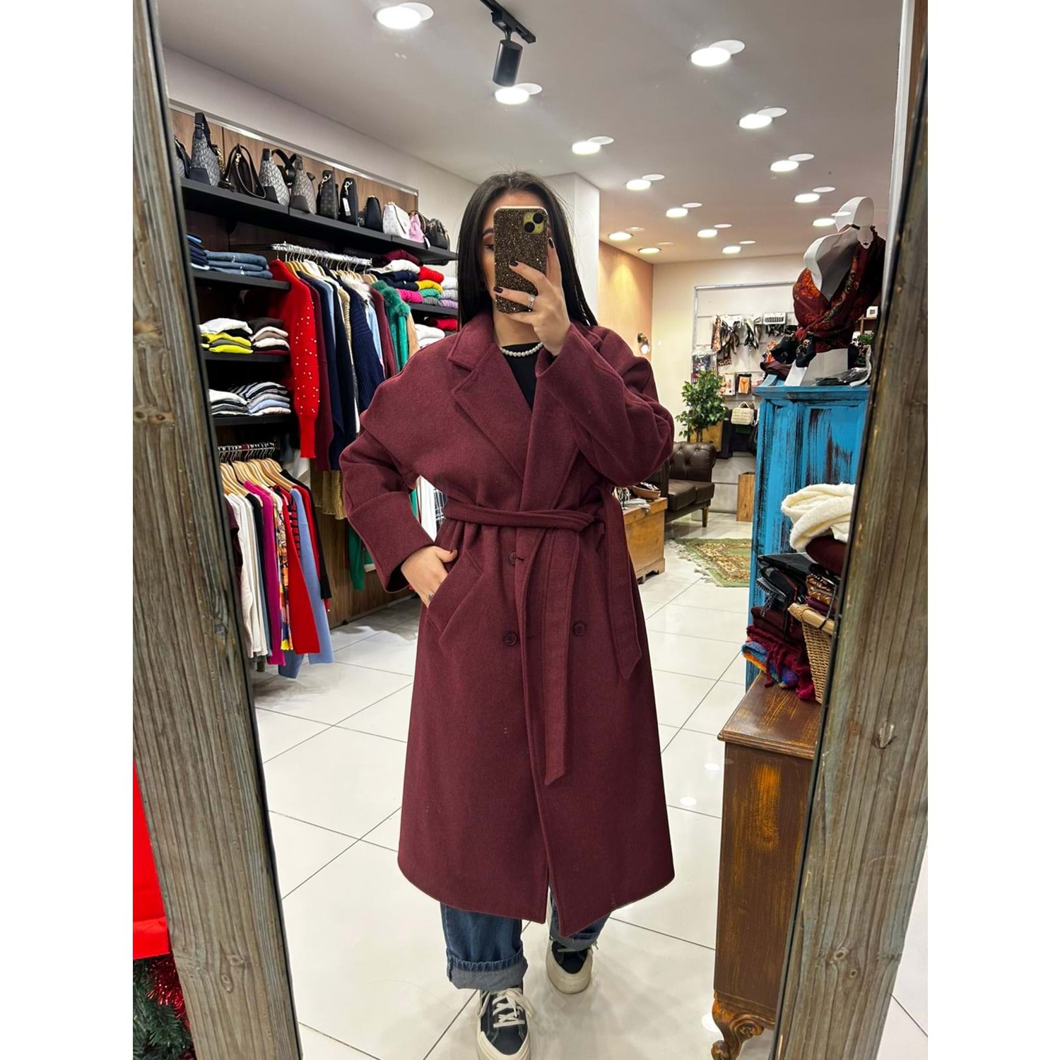 VİSKON YÜN KARIŞIMI UZUN MODEL KUŞAKLI 30 DERECEDE YIKANABİLİR