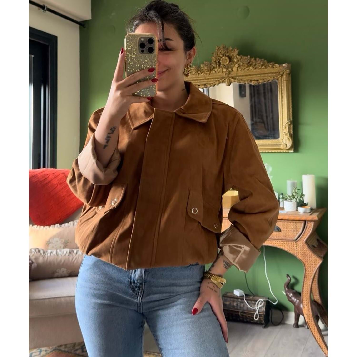 NUBUK KUMAŞ ÖNDEN CEP DETAYLI ARKA BEL LASTİKLİ POLİESTER ASTAR HASSAS YIKAMA KURU TEMİZLE TERCİH EDİLEBİİLİNİR