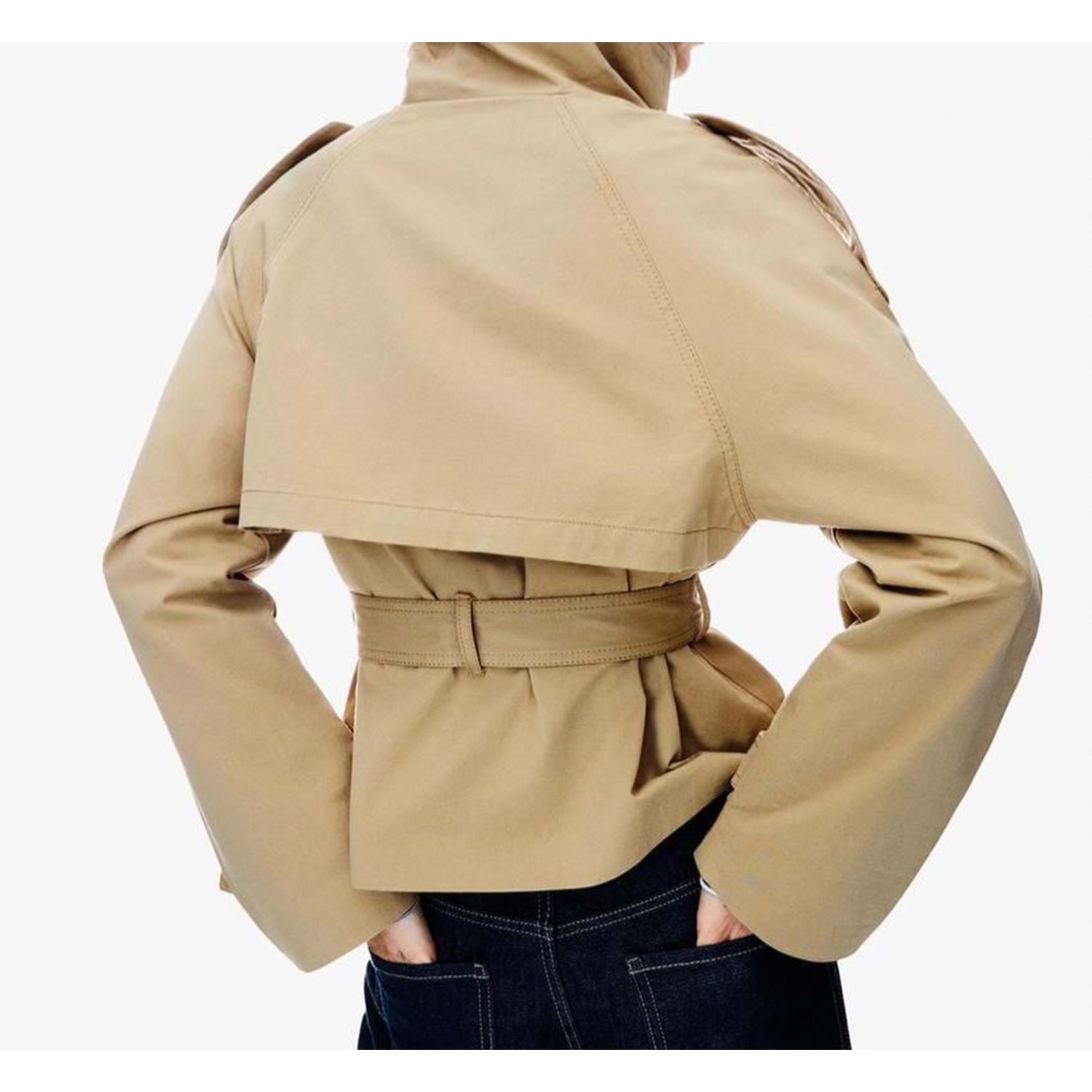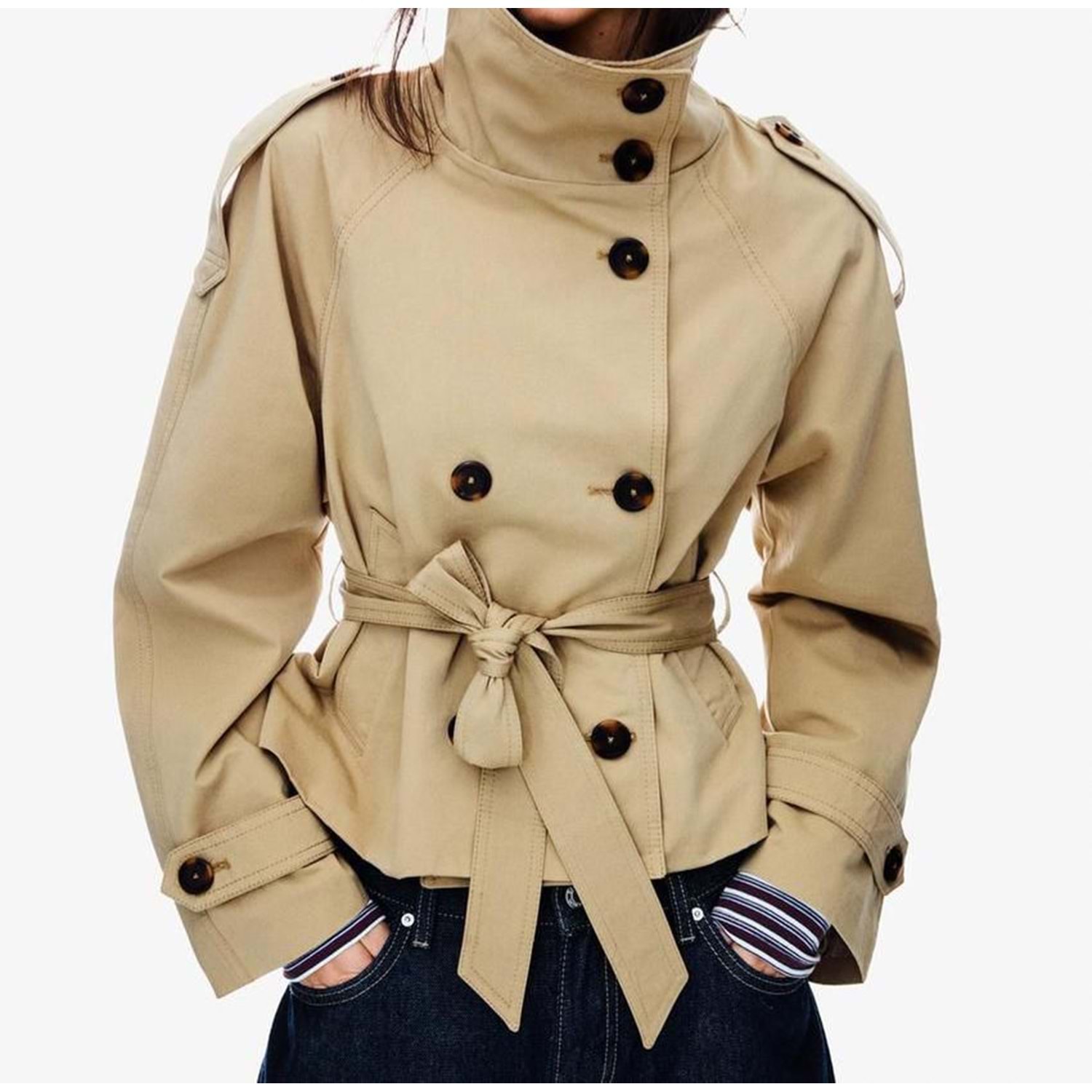 KISA BAĞLAMALI TRENÇ %88 POLYESTER %12 ELESTAN PAMUK ASTARLI HASSAS YIKAMA ÖNDEN DÜĞME VE OMUZ DÜĞME DETAYLI CEPLİ
