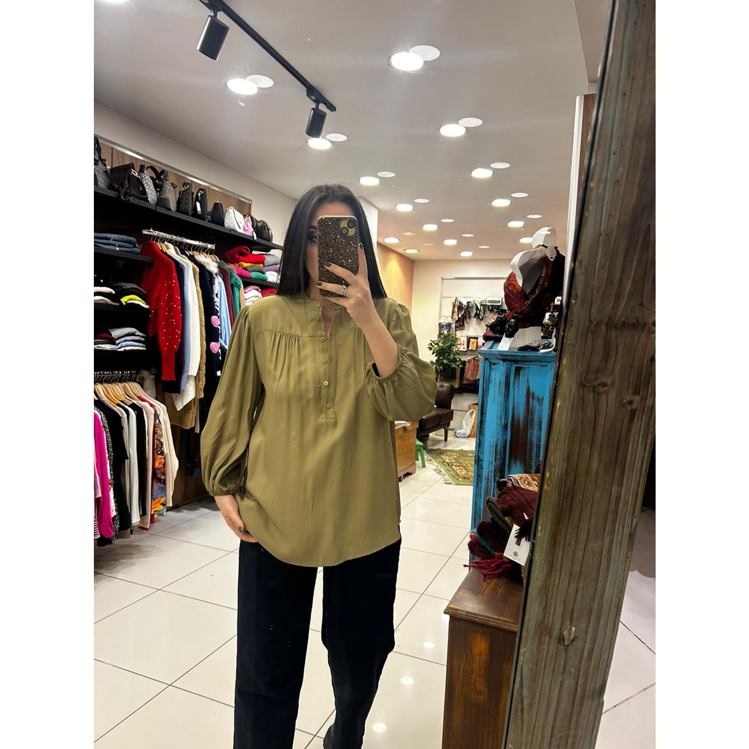 HAKİM YAKA UZUN KOLLU ÖNDEN DÜĞMELİ KOL LASTİK DETAYLI %100 PAMUK HASSAS YIKAMA