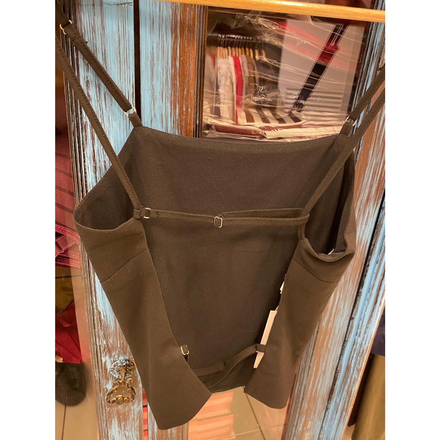 ASKILI SIRTI AÇIK İP DETAYLI %64 POLYESTER %34 VİSCON %2 ELASTENAE HASSAS YIKAMA